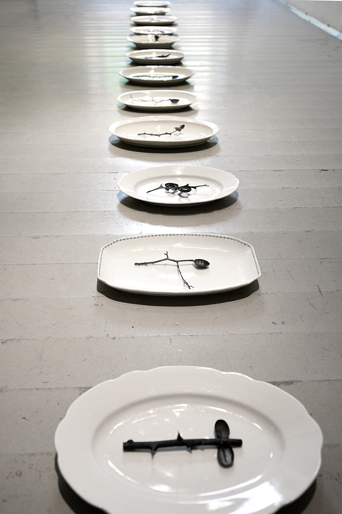 From the fundamental geometric shape – the handle, which can be represented as a line, and the bowl, depicted as a circle – she develops an overwhelming variety of metal objects. It's a game with the symbolic interplay of fullness and emptiness, of taking and giving. Each spoon object is the expression of an inexhaustible fantasy and a joy in shaping matter. The silver spoons have a head and body, stem and leg, blossom, fruit, and leaf. They perform a little dance, speak with one another, and enter into communication with the observer / user.