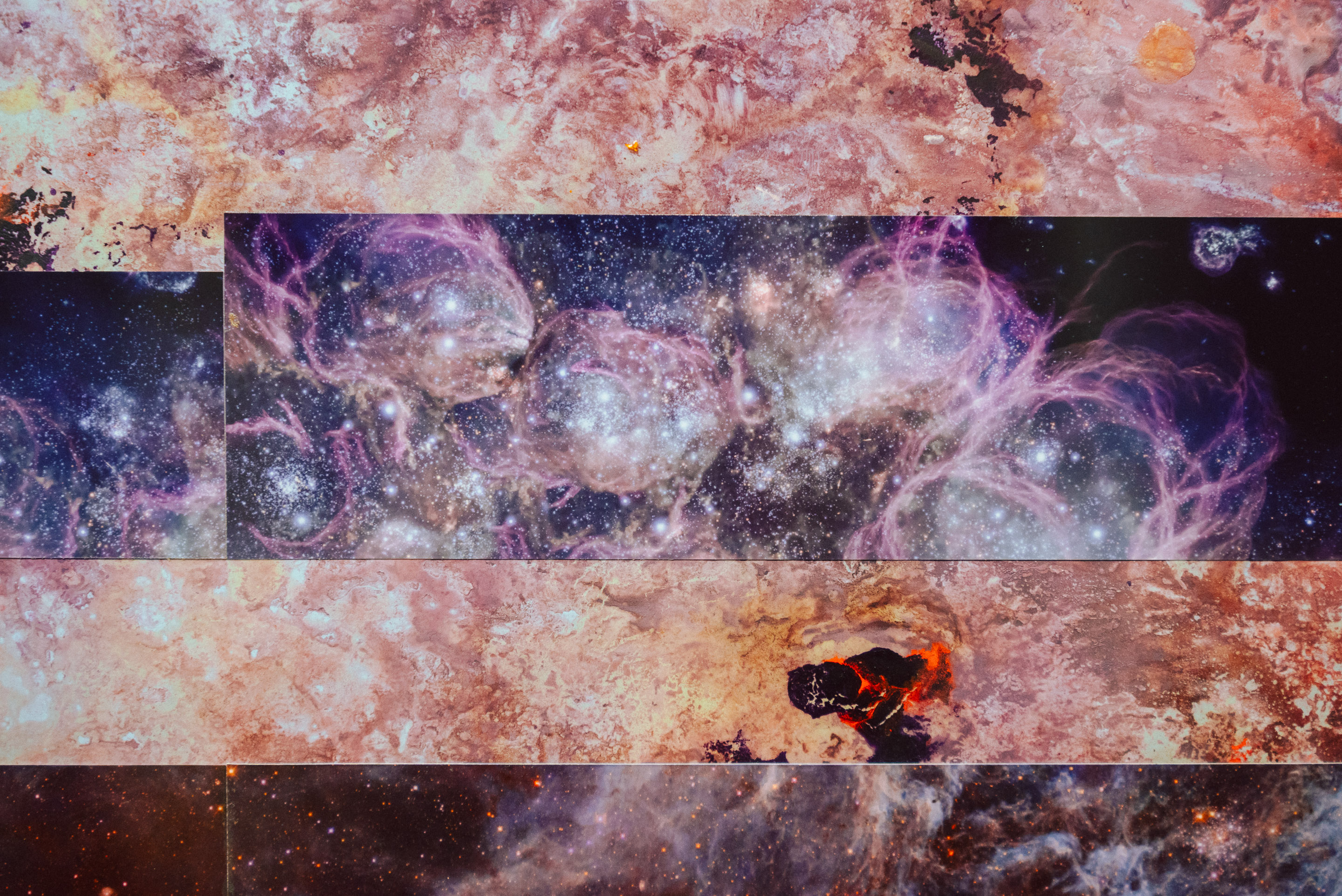 This diversity of approaches is not merely a technical gimmick, but a profound reflection on our way of perceiving reality and constructing meaning through images. Photographic surfaces become textures, pixels become digital brushstrokes, analog photographs regain their materiality, while the installation-like character transforms the exhibition space into a landscape that invites visitors to traverse it.
